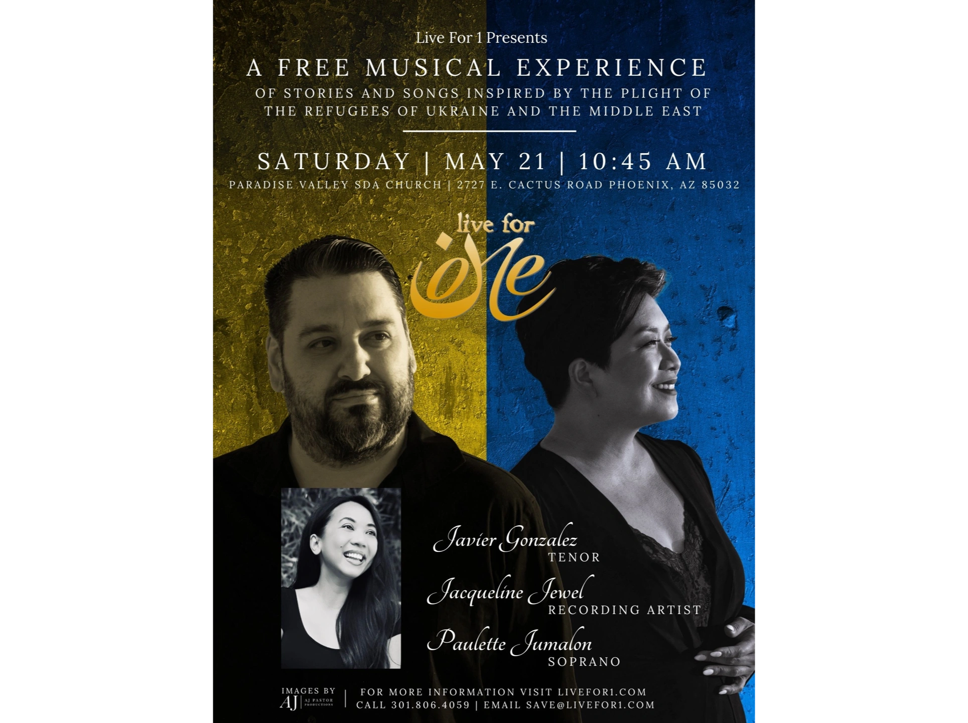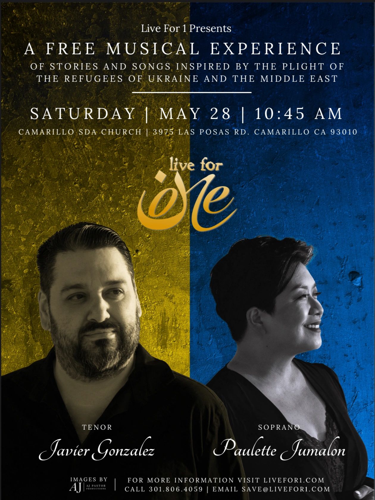 The mission of LiveFor1 is to use the performing and media arts to engage and activate communities for the sake and support of refugees who have been persecuted for their faith. We believe that by using our God-given talents, we can live for others, and by working together, we can accomplish wonders. Create for Life. Love by living. Serve by giving.